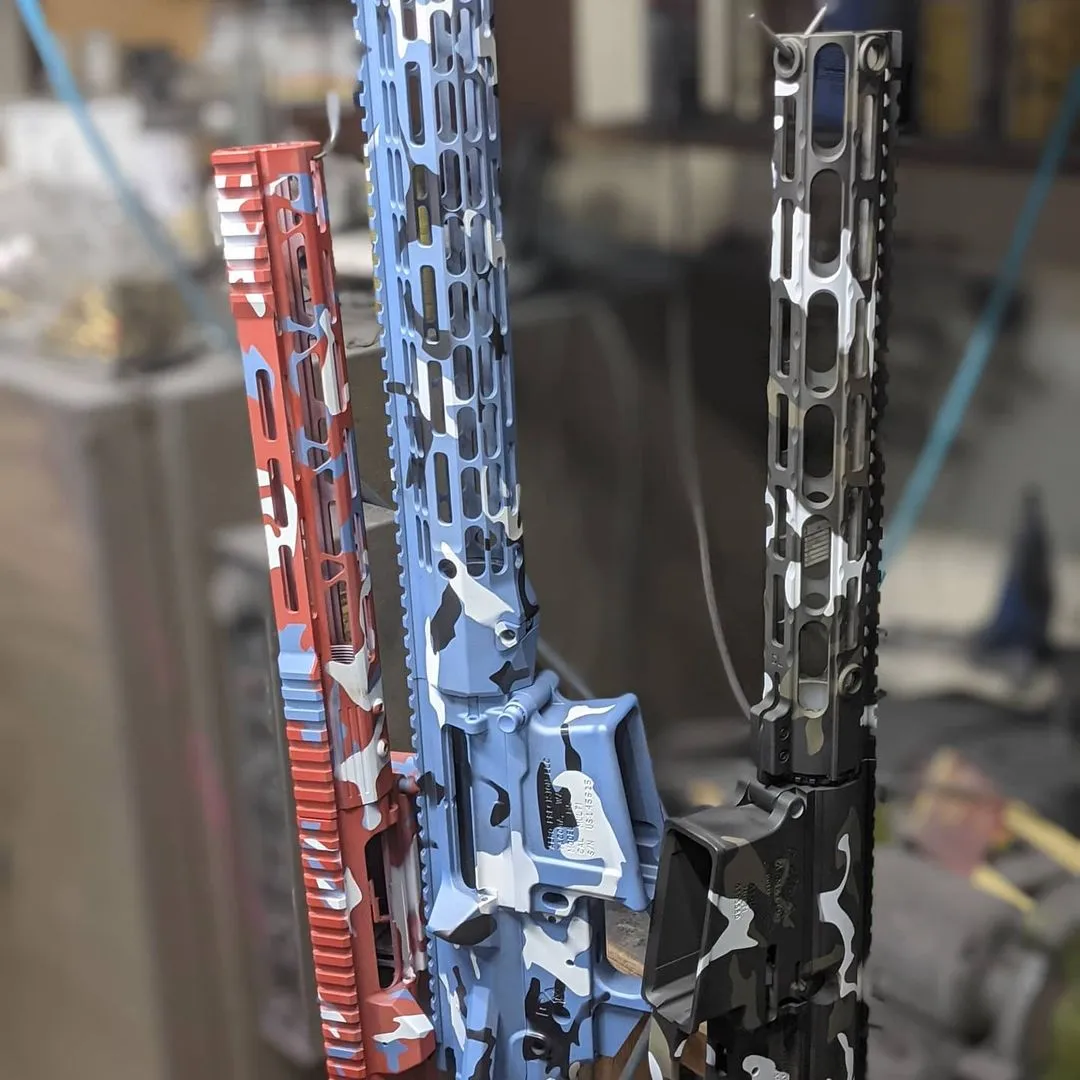 If your gun wants to get dressed up and shown off, we’re happy to oblige. The possibilities are endless. We can cerakote anything. Camo patterns are very popular, but we’ve done custom designs, bold color combos and a few quirky, lighthearted concepts that are completely unique to the owner. This is art and we are the cerakote artists who brings your vision to life. Let’s talk about what your dream gun looks like.